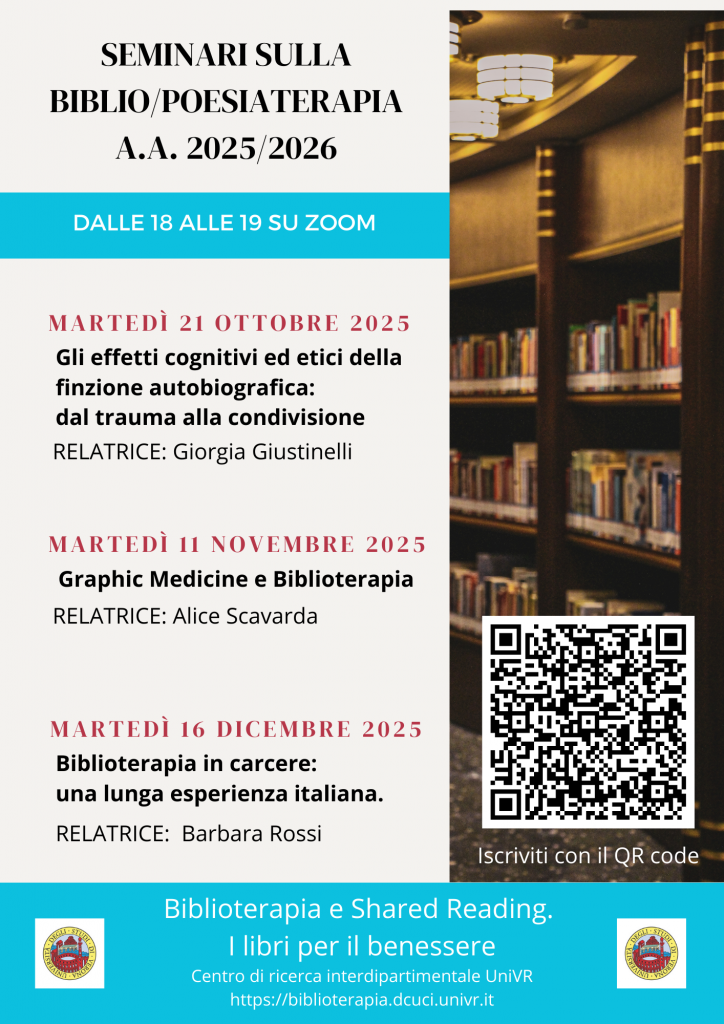L’Università degli Studi di Verona è il primo ateneo italiano a occuparsi di ricerca sulla biblioterapia. Grazie all’iniziativa del dipartimento di Culture e Civiltà, è stato fondato questo centro di ricerca che ha incluso i dipartimenti di Neuroscienze e Scienze Umane.